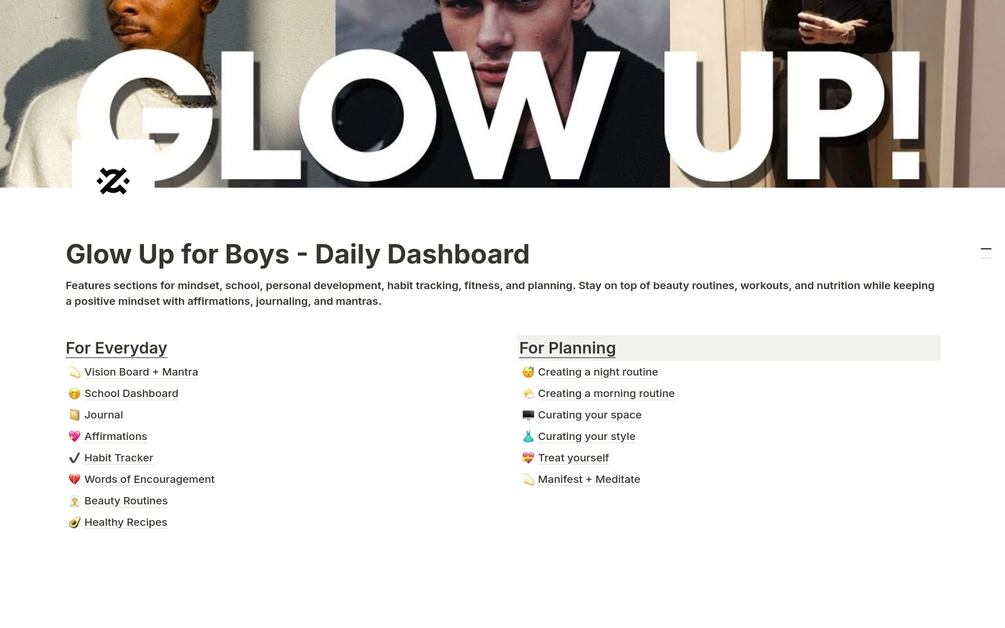 Glow Up for Boys - Daily Dashboard & Notion Template